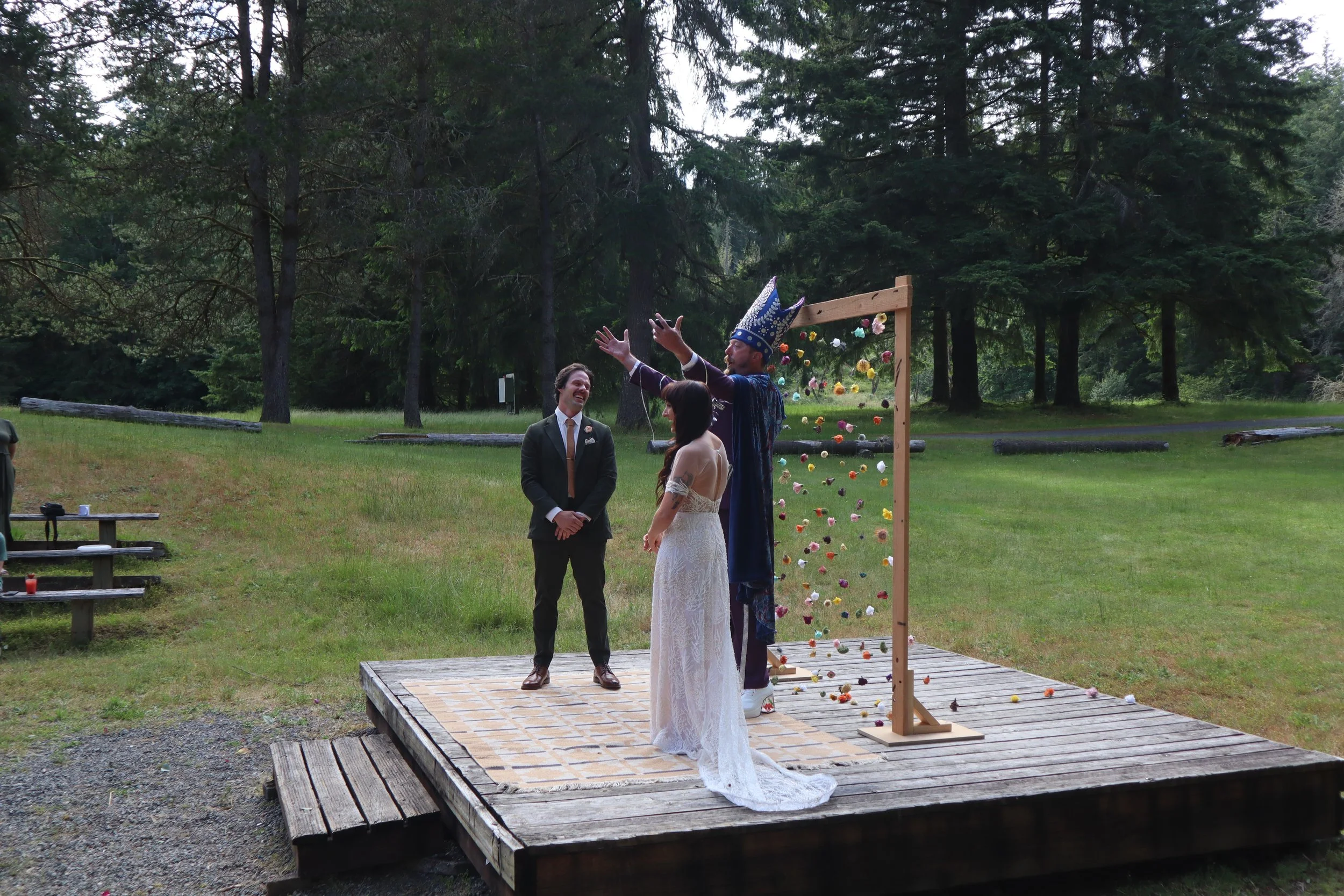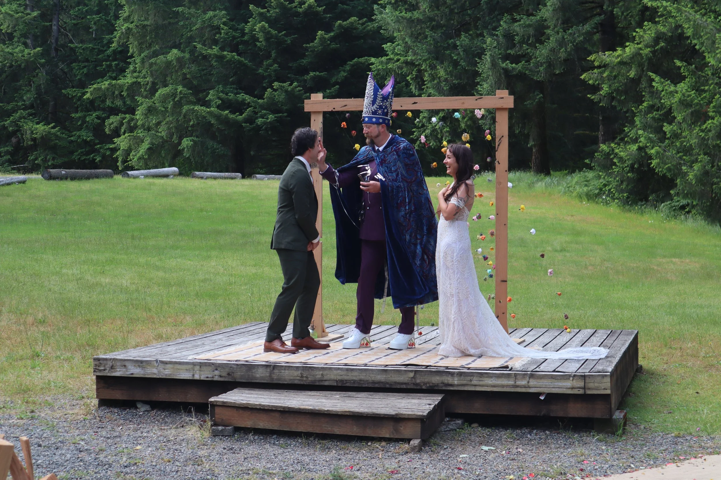 Do you need an officiant for your wedding but you have no ties or attachments to an organized religion? Want something special for your ceremony but you’re not sure where to start? Are you hoping for something sentimental but none of your friends and family have a knack for public speaking? We offer a fun and romantic option for wedding ceremony and officiation. Dan will custom create a speech and ceremony that is detailed to your specific relationship. He has many years of experience in public speaking, theater and wedding officiating. Interested in seeing some samples of his speeches? Just reach out to us and we’d be happy to show you what we’ve done in the past!